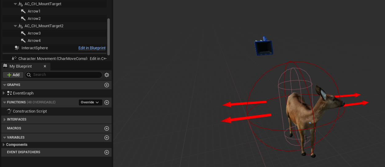 Animal example showing mount targets and arrow components placed directly on the mountable actor.