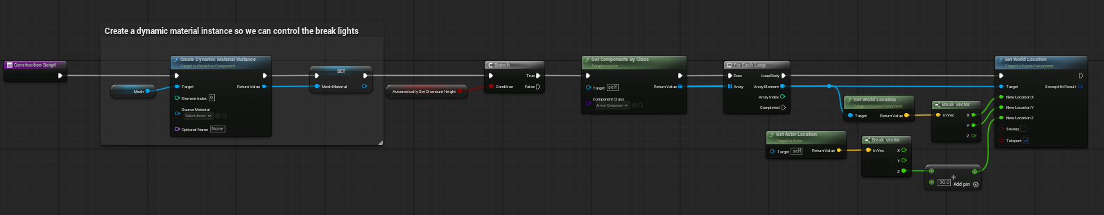 Sample vehicle construction logic that helps align arrow positions for cleaner dismount placement.