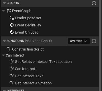 BP_Lootable_Corpse overrides base interaction functions from its parent. |