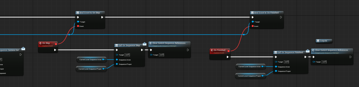 Each of these callbacks is then forwarded through manager-level events or functions. That is one of the strongest parts of the system: other gameplay code can listen to the manager's clean callback layer rather than binding directly to newly created sequence players every time.