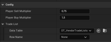 - Trade List: Data table containing items for sale (uses same structure as Item Allocator loot tables)
