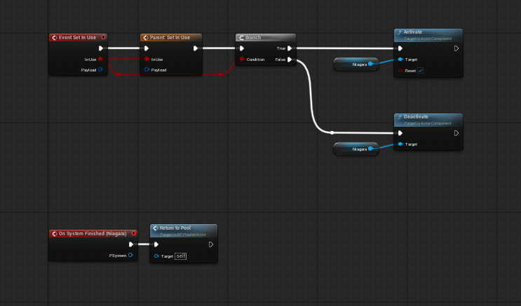 - Bind the Niagara On System Finished event to Return To Pool so the actor gives itself back automatically.