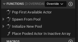 To add a new pooled actor type, create a child blueprint from the base pooled actor and make that child responsible only for its own presentation and custom setup. The manager should continue to own pool creation, availability, and recycling.