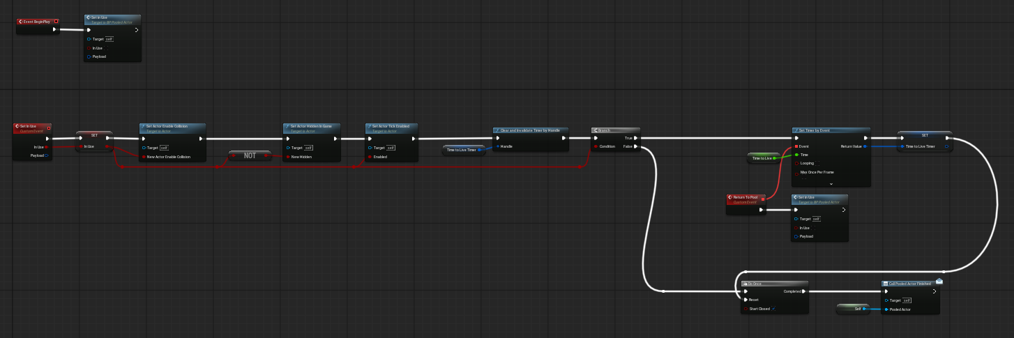 For more complex child actors, the safest approach is to treat Set In Use as the activation hook and Return To Pool as the shutdown hook. Avoid embedding pool ownership logic into the child itself; let the child only decide how it behaves when active and when it is done.